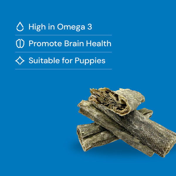 Treat your furry friends to the irresistible taste and health benefits of our Fish Skin Flatties. With their natural goodness and satisfying crunch, these treats are sure to become your dog's new favourite snack. Make your dog's tail wag with joy by providing them with a snack that is both delicious and nourishing!